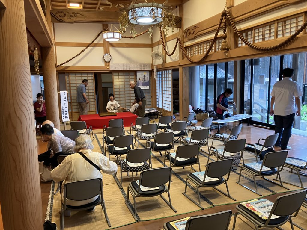 大雨予報でしたが、当日は小降りに。20名ほど来ていただけたら…と思いつつ、期待を込めて40ほど椅子を用意しました。開始30分ほど前の様子。
